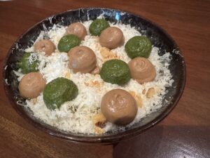 そして、見た目はとんかつ、食べると新しいジャンルの食べ物との出会いが始まります。