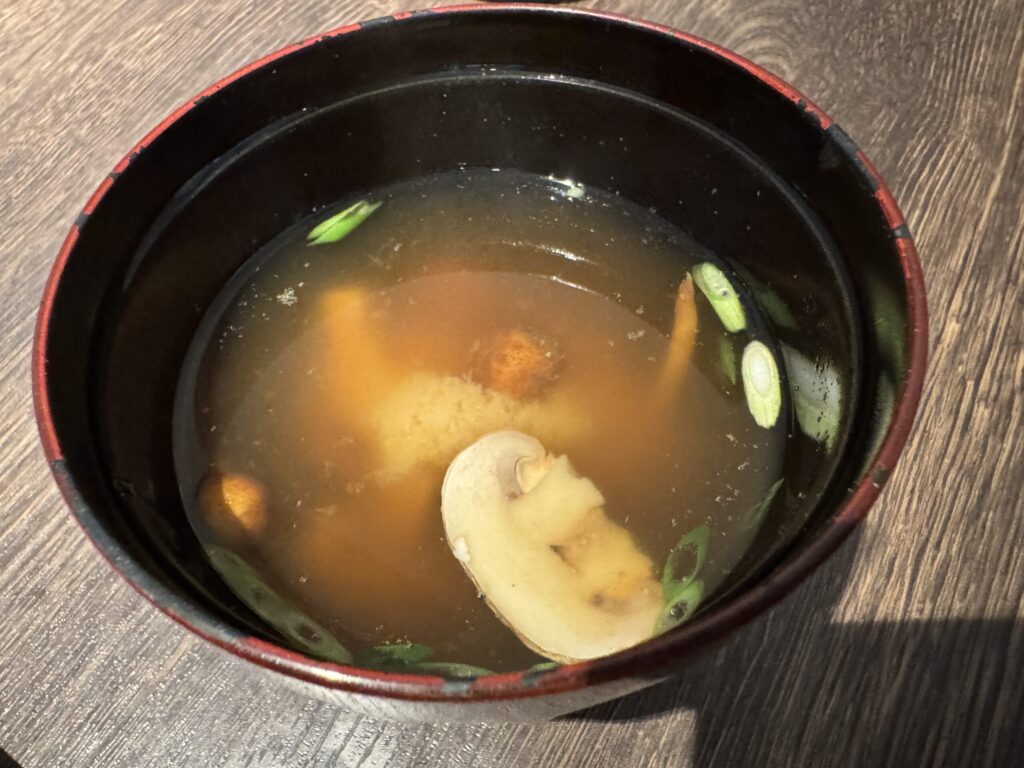 味噌汁はきのこと小ネギでした。間違いなくとんかつに合います。具材一つまでこだわり抜いて選んでいるようです。