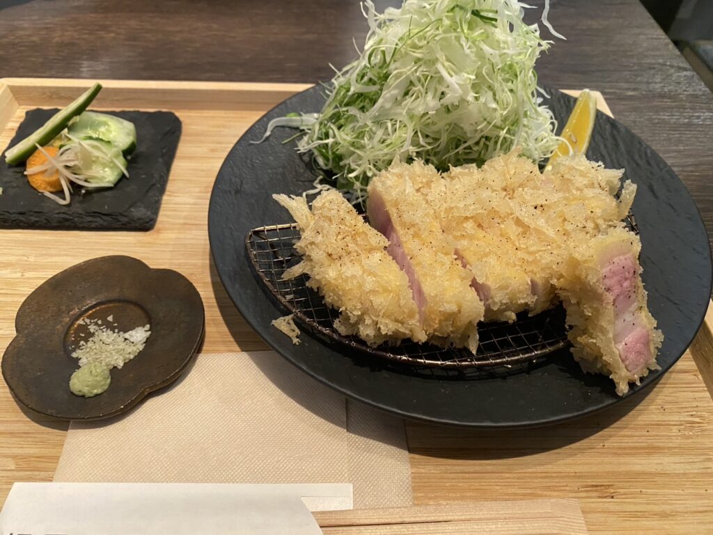 提供まで30分ほど待ちました。まずは貴重なとんかつから提供されます。目にした瞬間期待は高まり、一口食べた瞬間あまりのジューシーさに驚きを隠せませんでした。これはとんかつと名のついた別の食べ物だ。と思うはずです。