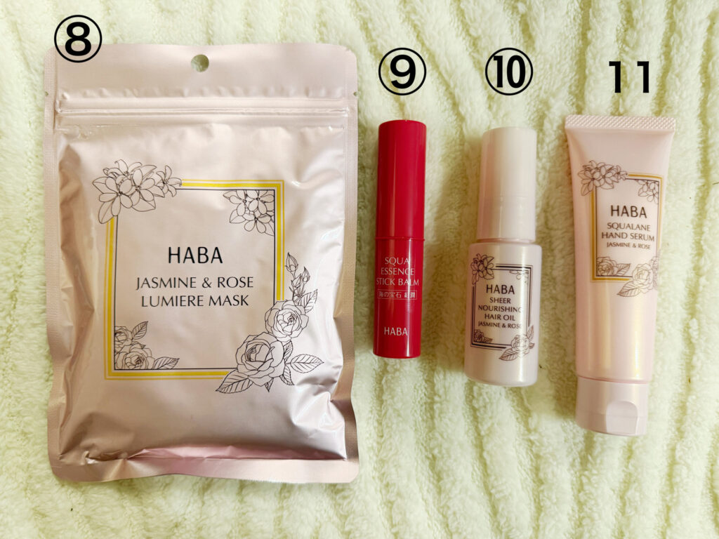 HABA(ハーバー)福袋2026には、現品だけでなく、福袋でしか手に入らない限定品も含めて豪華12点が入っていました。