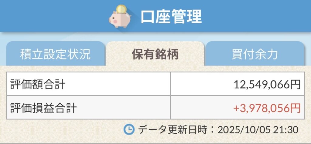 評価額合計は12,549,066円になりました。変わらず評価額1,200万円台を推移しています。