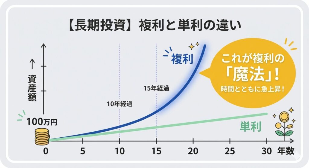 元本が同じでも、10年後、20年後には、複利の効果によって「自分でも驚くような数字」に化けるのが投資の醍醐味です。
