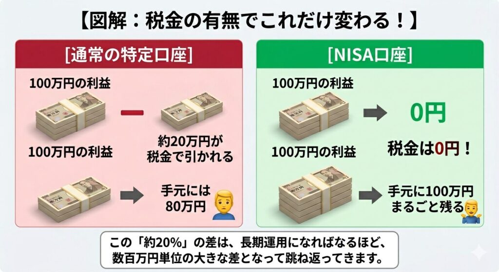 NISA口座では税金がかからないという最大のメリットがあります。