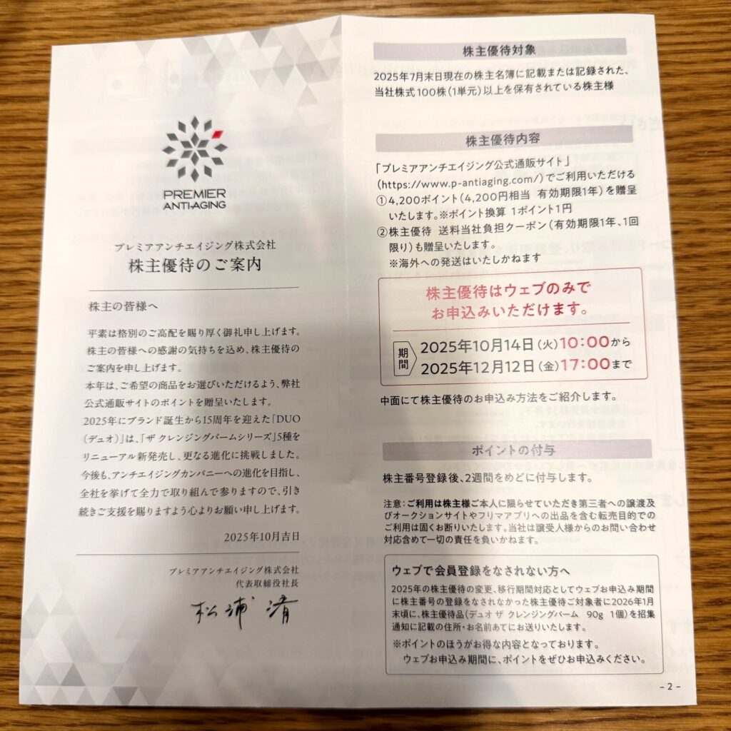 プレミアアンチエイジング株主優待(2025年)