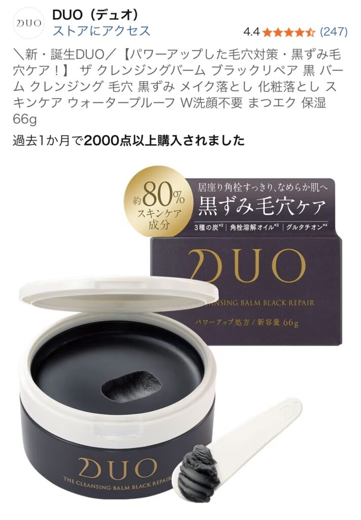 DUOザブラックリペアは、毛穴汚れ・皮脂詰まりケアに特化したクレンジングバームです。