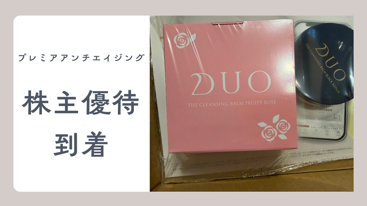 申し込み後、プレミアアンチエイジング株式会社(4934)から株主優待ポイント4,200円が1週間ちょっとで付与されました。さっそくオンラインショップで、DUOクレンジングバームの限定品「フルーティーローズ」現品と「ブラックリペア」のお試しサイズを注文しました。