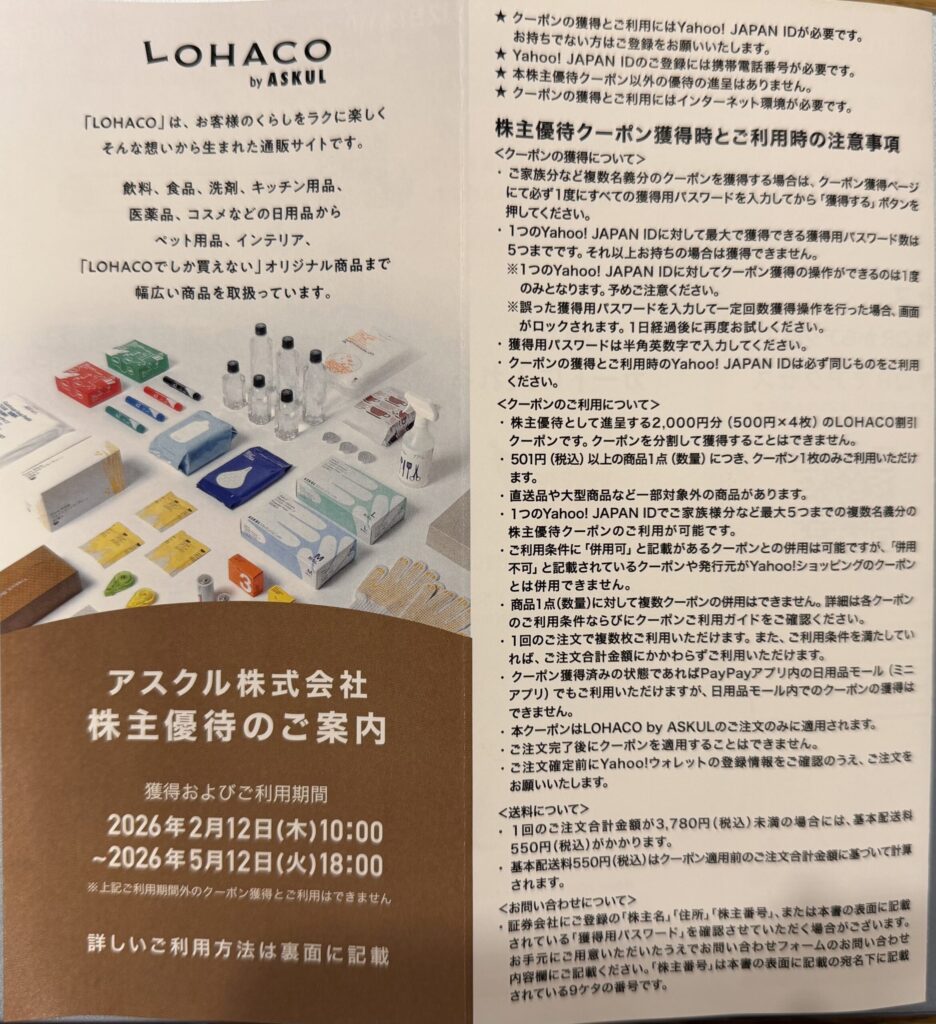 アスクル株主優待にご興味のある方は、ぜひお読みください☺️