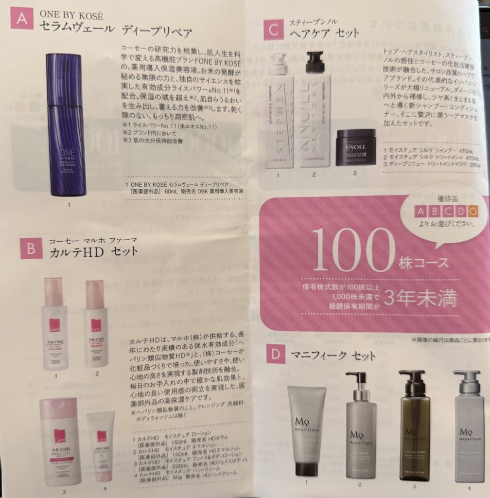 今回、初めての優待取得なので【100株コース 3年未満】の中から、セラムヴェール ディープリペアを選びました。