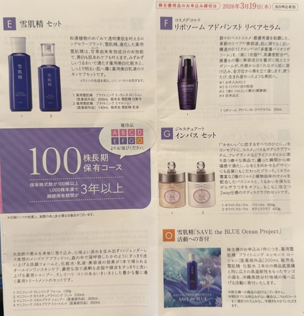 2026年、2月。コーセーから株主優待カタログが到着しました。